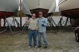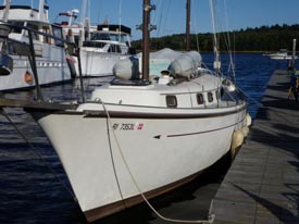 Booms, lifelines, stanchions and all the running rigging off. Ready to settle down for a long Winter's nap.